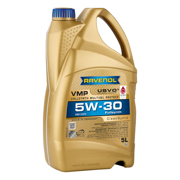 RAVENOL VMP 5W-30 – полностью синтетическое легкотекучее среднезольное (MID SAPS) моторное масло, изготовленное с применением технологии USVO® и CleanSynto® для легковых бензиновых и дизельных двигателей, а также двигателей с прямым впрыском и турбонаддувом. Удлиненные интервалы замены согласно требованиям автопроизводителей.